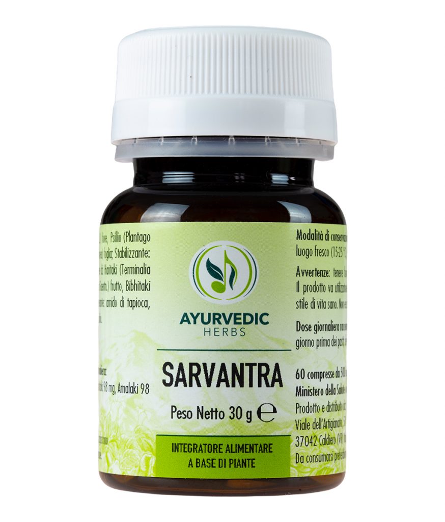 Tenore degli ingredienti vegetali per dose giornaliera: Rosa 295 mg, Psillio 295 mg, Bilva 295 mg, Haritaki 98 mg, Amalaki 98 mg, Bibhitaki 98 mg.